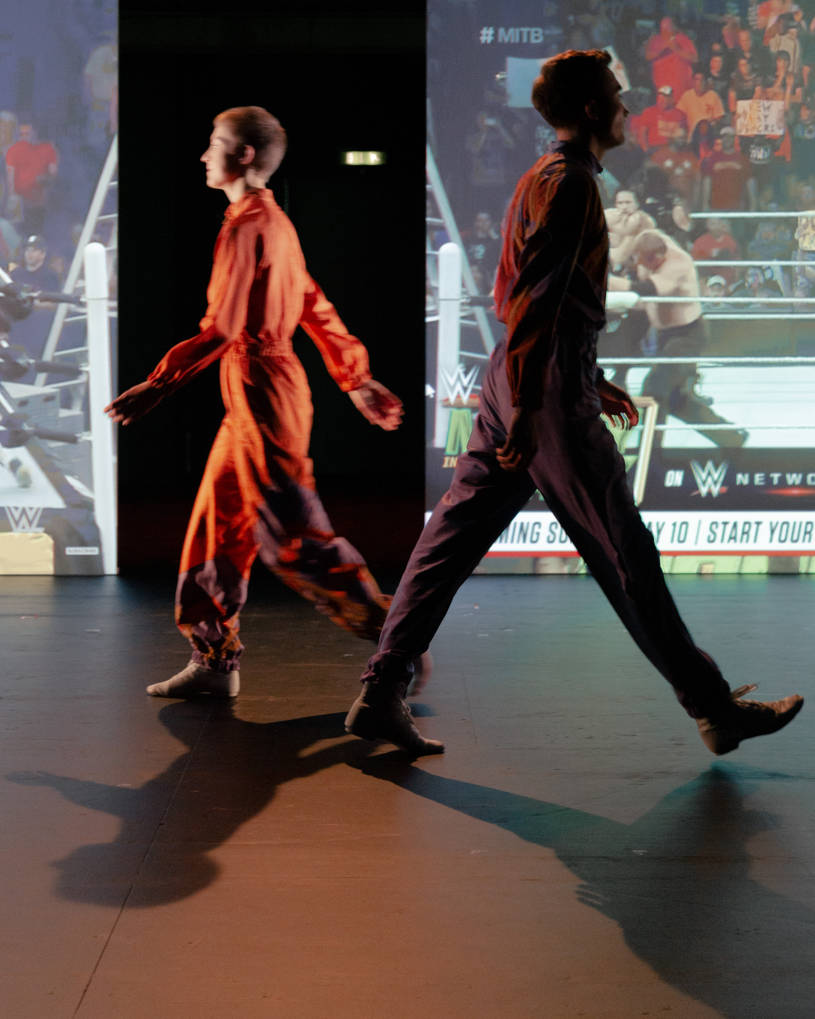 „Ich habe mich in drei Stuntperformer:innen verliebt. Ich schreibe ihnen Liebesmails. Etwas später stehe ich in Alisters Garage. Sie ist mit roten Matten ausgelegt. Alister trainiert mich dort. Mich suchen in der Zeit Träume davon heim, wie ich mit dem Rücken aufschlage. Ich denke: „Ich habe Angst zu fallen“, solange, bis es nicht mehr ganz stimmt.”